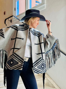 The garment creation process begins in Rebecka’s home sewing studio in Denver, Colorado. Each piece is thoughtfully designed, meticulously hand-cut and sewn with careful consideration for the unique characteristics of the Pendleton© design. Seldom are pieces exactly replicated ensuring each garment is a one-of-a-kind creation.